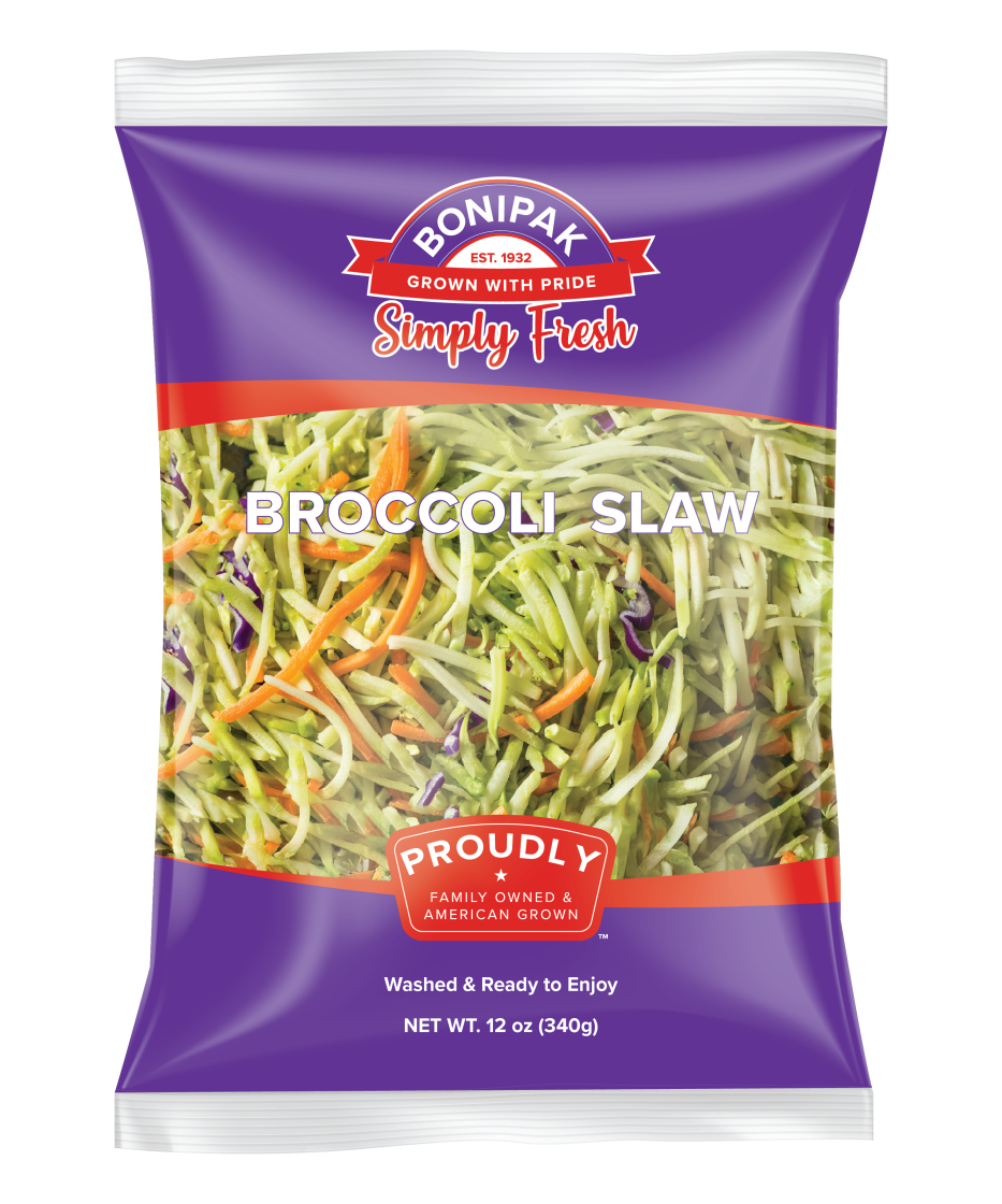 Bonipak’s broccoli slaw is grown year round in California and Yuma, Arizona.